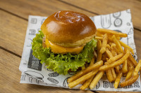 Feito com pão brioche, hambúrguer caseiro bovino de 100g, queijo cheddar, alface, tomate e molho especial do chef. O queridinho da casa!